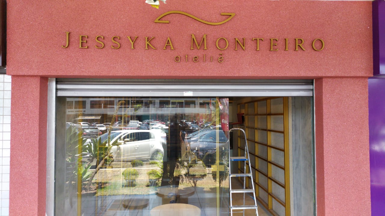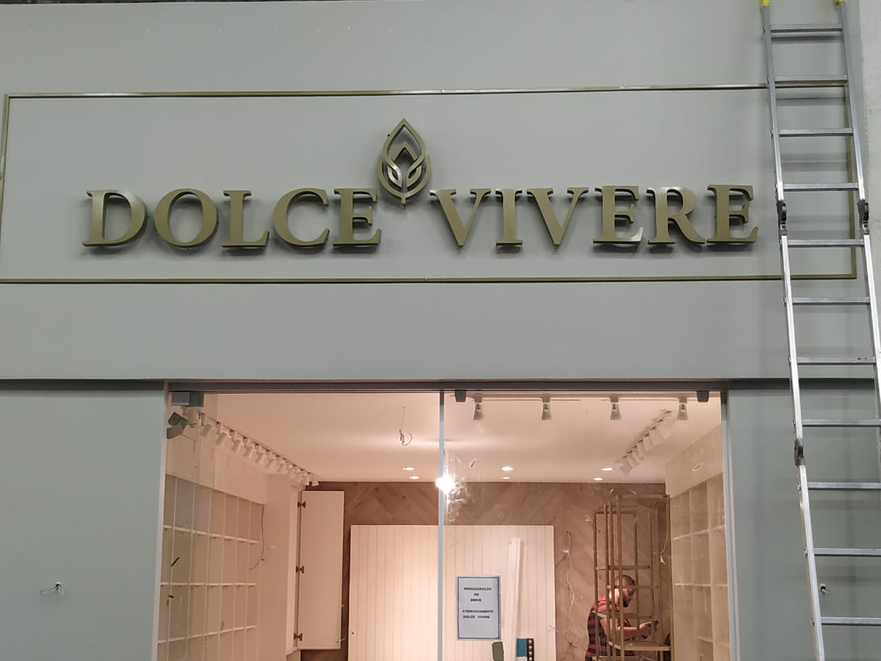 Letreiro com letras individuais soldadas e moldadas como caixa