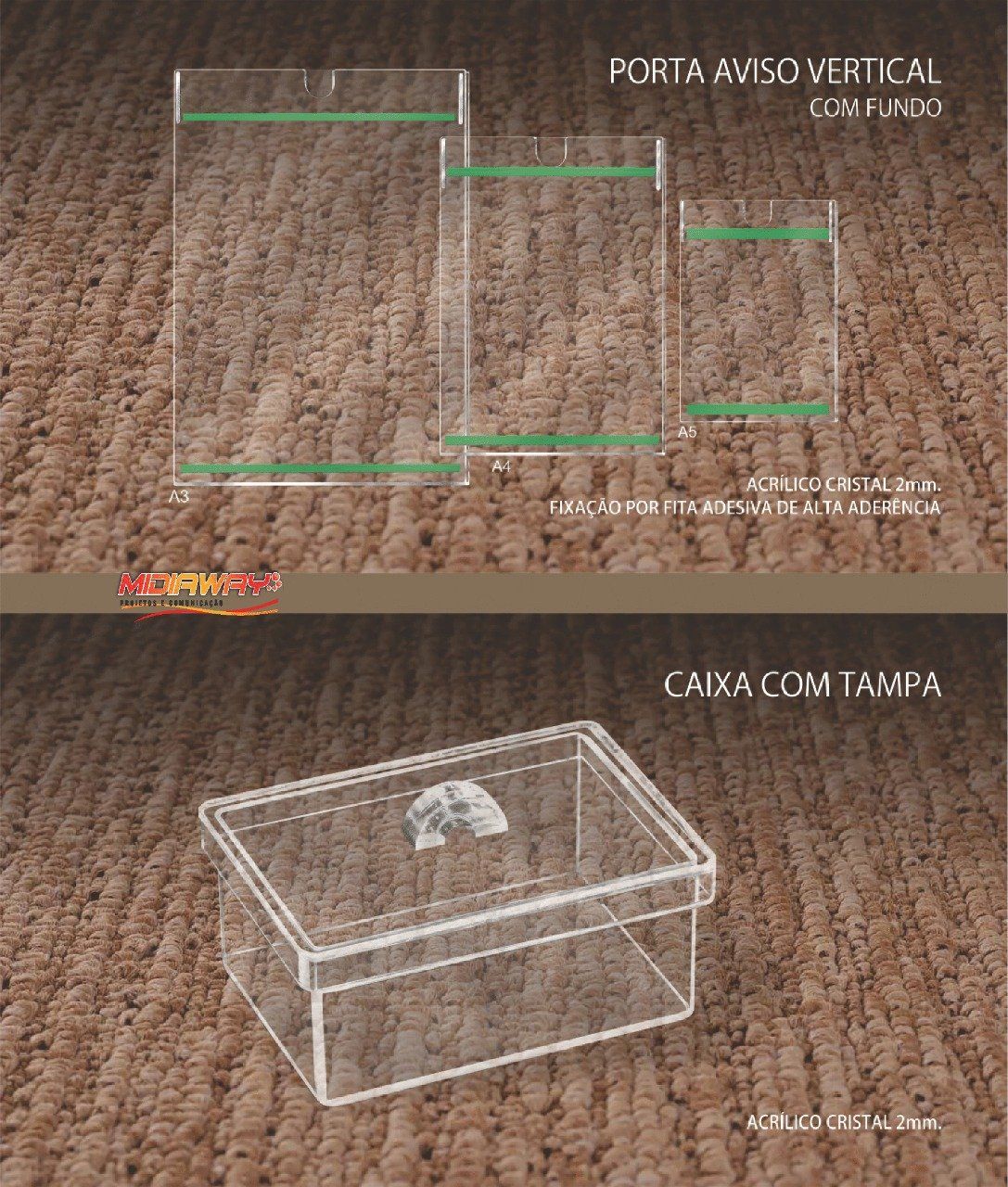 Executamos conforme seu projeto ou necessidade corte em acrílico a laser, em diversas espessuras e, como é característica da MidiaWay, com a melhor qualidade. A vantagem do corte em acrílico a laser está na alta definição de cada detalhe, além de ilimitadas possibilidades de criação.